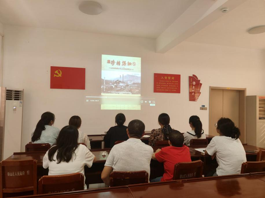 西塞山区青龙阁社区联合市社会保险事业局集中观看《珍档探秘》