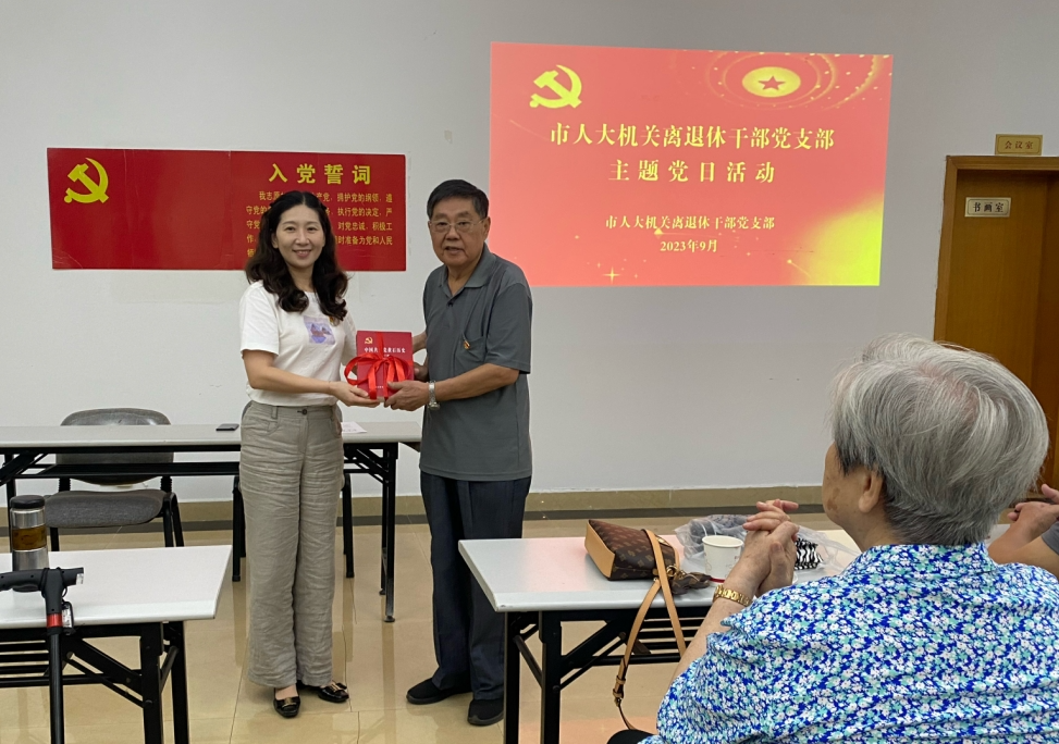 学党史,悟思想。邓瑰代表市档案馆向市人大常委会机关离退休干部党支部赠送了市档案馆编撰的党史书籍——《中国共产党黄石历史》(第一、二卷),引导离退休党员干部在党史学习教育中走深一步、学深一层,鼓励他们退休不褪色,带头做好学习表率。