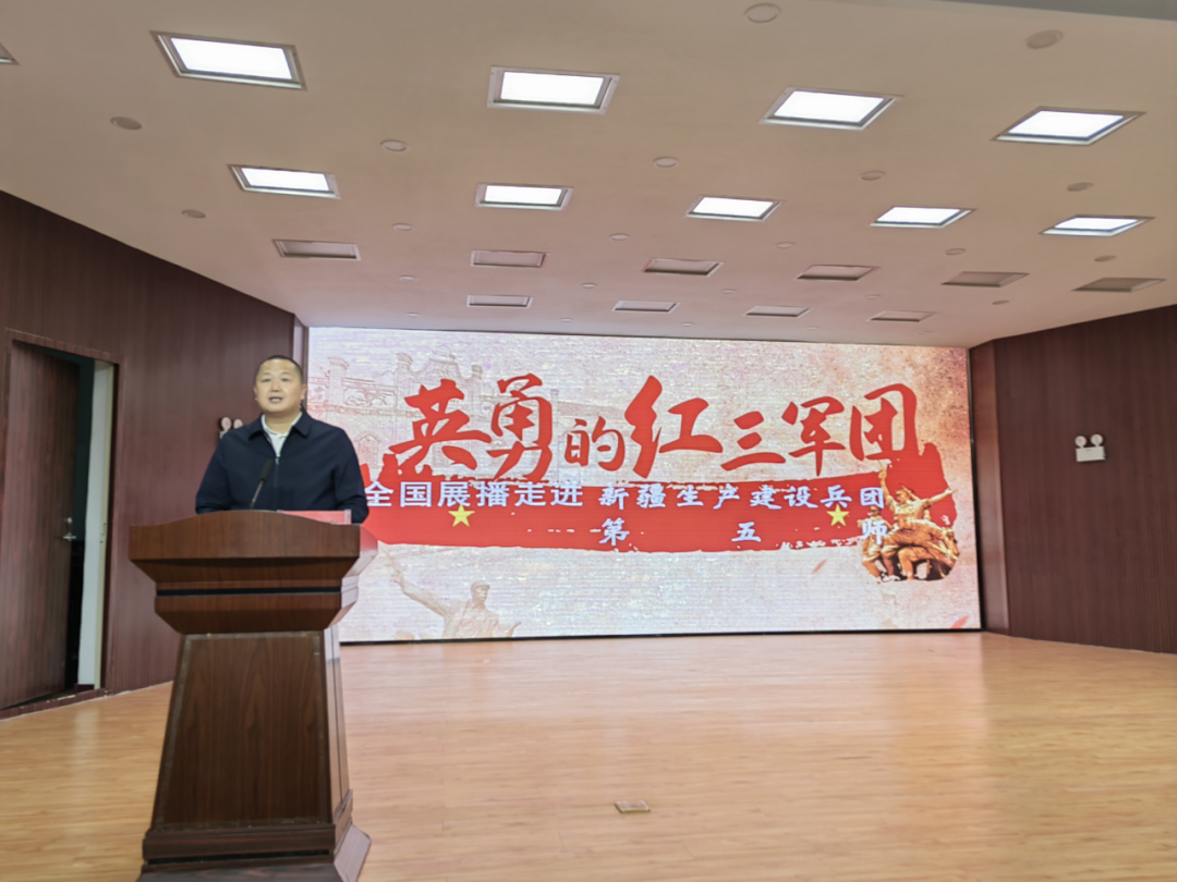10月31日,《英勇的红三军团》全国展播走进新疆生产建设兵团第五师活动在第五师高级中学(黄冈中学五师分校)举行,由兵团第五师党委办公室(第五师档案局)、湖北省黄石市档案局、黄石市档案馆、湖北省援疆第五师工作队、第五师高级中学(黄冈中学五师分校)联合举办。湖北黄石市委副秘书长、市档案局局长郭卫东,兵团第五师党委保密委专职副主任张晔出席活动并讲话。第五师高级中学(黄冈中学五师分校)党委书记范占国致欢迎辞。