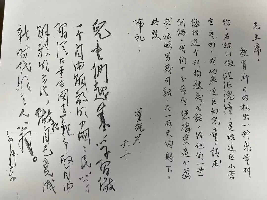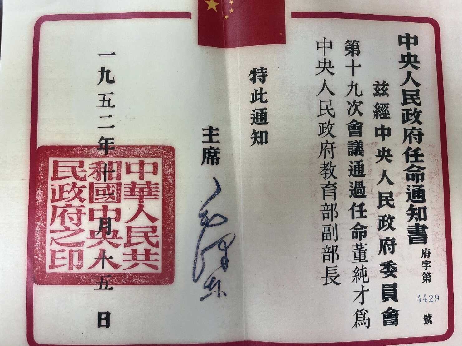 捐赠仪式上,董万万先生详细介绍了捐赠的档案资料情况,并移交董纯才同志请求毛泽东主席给《边区儿童》刊物题词的信件及题词、董纯才同志与周恩来总理的合影、《董纯才传》《董纯才纪念集》《董纯才科普创作选集》等26件珍贵档案资料。这些档案资料不仅是董老一生革命与工作历程的真实写照,更进一步充实了我馆红色档案资源库,对于传承红色教育基因,弘扬新时代教育家精神具有不可替代的价值。