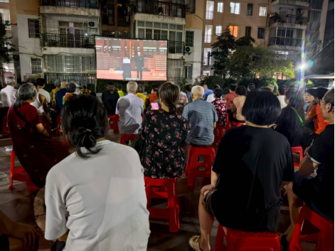 黄印村社区群众观看《珍档探秘》《革命歌曲唱响鄂东南》等短视频