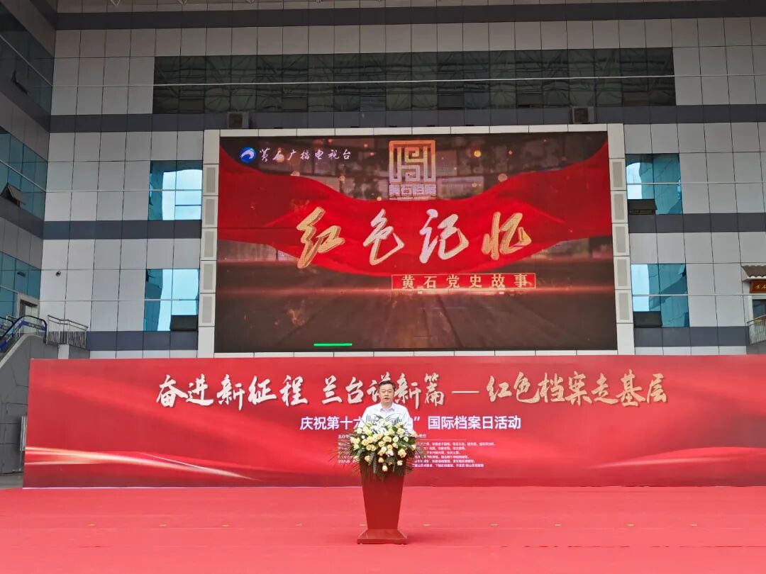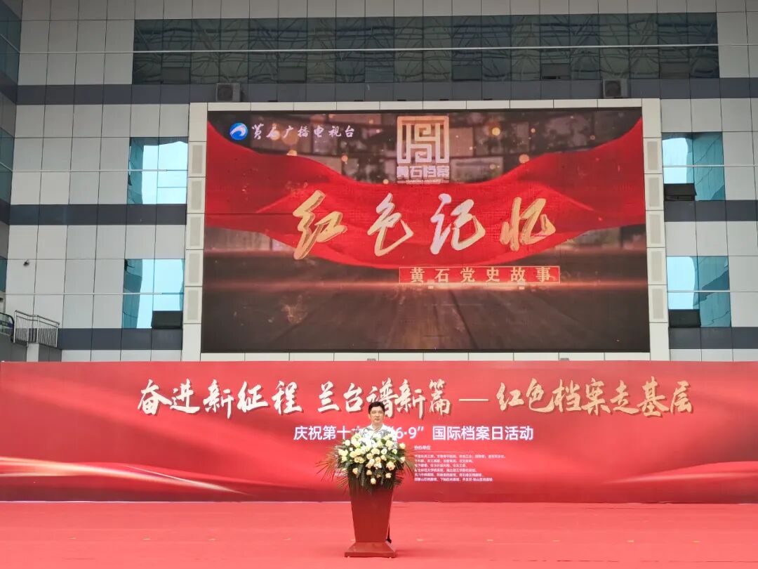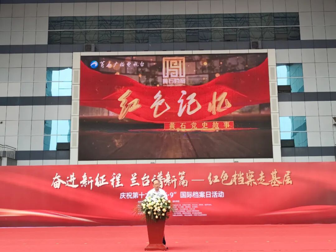 6月7日,在第16个6·9国际档案日即将来临之际,黄石市档案馆(市史志研究中心)联合市档案局、黄石港区委、市委党校、市广播电视台、市文联主办的“奋进新征程 兰台谱新篇——红色档案走基层”系列宣传活动,在市工人文化宫广场举行,各机关单位、各大中小学生、社区居民群众共计500余人参加了活动。市委常委、市委秘书长朱宏伟出席活动。黄石港区委书记严荣勇致辞,市档案馆(市史志研究中心)馆长陆柱国作表态讲话。活动由《红色记忆——黄石党史故事》主播、黄石电视台资深主持人梁晶主持。