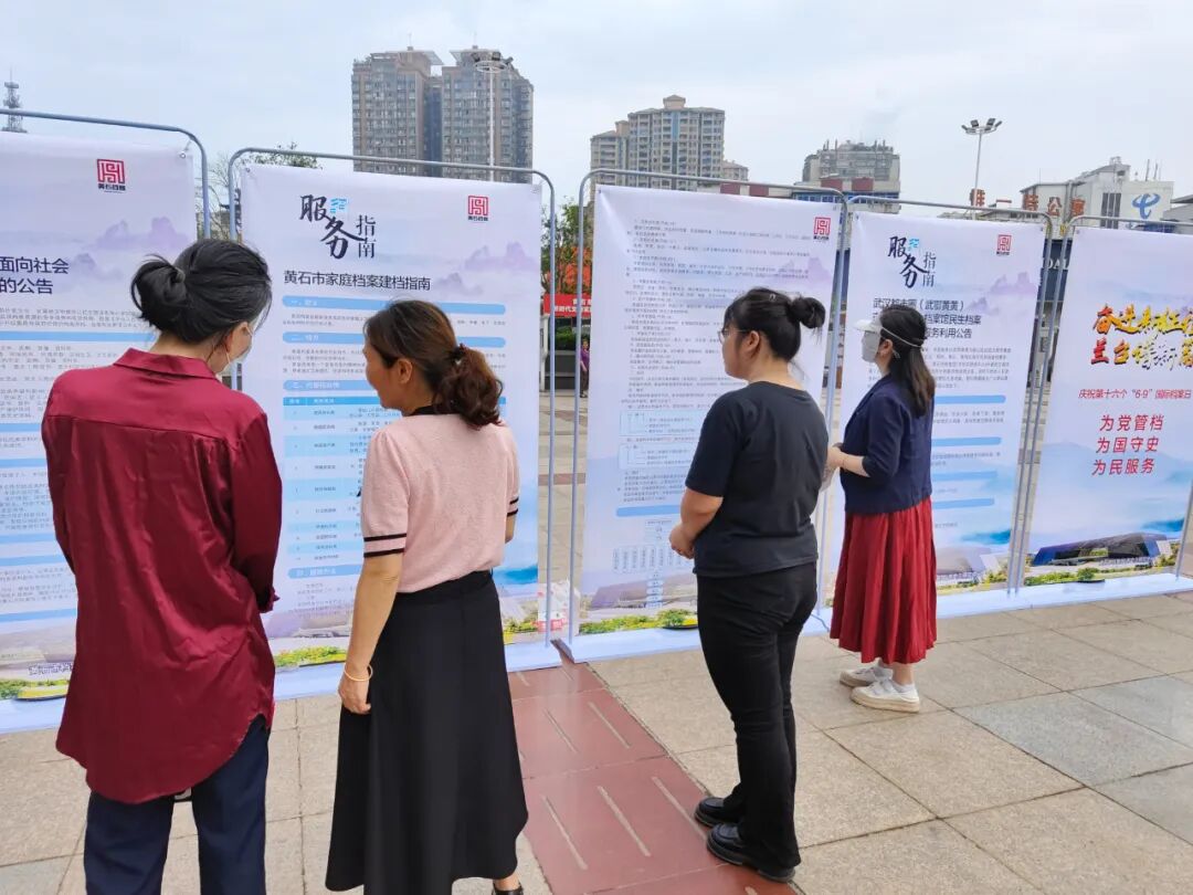 在工人文化宫广场现场设置国际档案日大型主题宣传展板,内容涉及档案法律法规、馆藏珍品档案展示、红色档案挖掘、红色档案下基层及档案服务民生等主题,生动展示了黄石市档案馆(市史志研究中心)在市委市政府的领导下,贯彻落实《档案法》的指导精神和具体要求,主动作为,深挖红色档案资源,开展红色档案下基层,服务全市党史学习教育的奋斗历程。