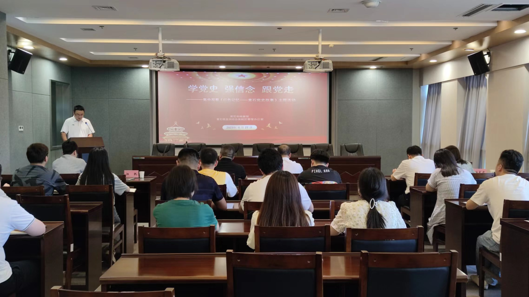 随后为全体党员干部播放了《红色记忆——黄石党史故事》合集电影。
