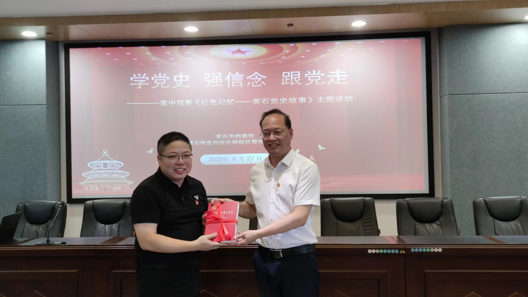 活动现场,市档案馆(市史志研究中心)向黄石棋盘洲综合保税区赠送了《中国共产党黄石历史》(第一、二卷)。这套党史书籍全面记录黄石党史重大事件、重要人物等内容,宣传党的革命斗争史,为广大党员干部坚定理想信念、迸发干事热情提供强大的精神动力。