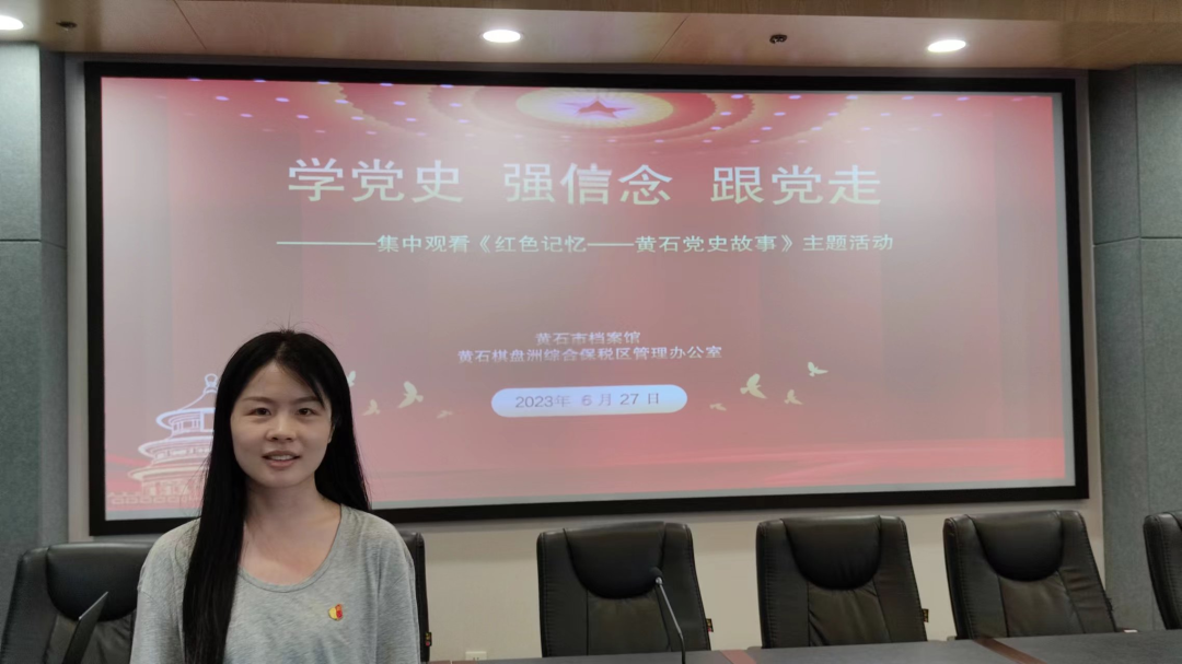 《红色记忆——黄石党史故事》是一部让我印象深刻的党史教育片。我要以革命先烈为榜样,接过艰苦奋斗的接力棒。综合保税区作为黄石对外开放的前沿阵地,我们应当主动出击、保持昂扬斗志,提振精神状态、提高工作标准、提升工作质效,以担当实干谱写武汉都市圈东向开放桥头堡的新篇章。