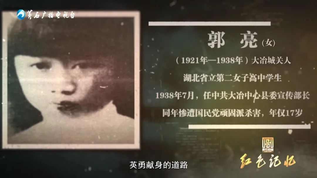 在黄石党组织初创时期,湖南籍工运领袖郭亮曾来黄石指导工人运动,参与领导“下陆大罢工”。而黄石本地,还有一位叫郭亮的巾帼英雄。他们有着同样的名字,同样的信仰,同样走上了为党和为人民的事业英勇献身的道路。