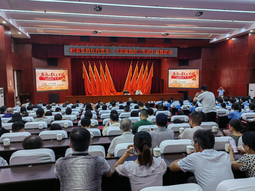 9月13日上午,档案里的红色党史——《英勇的红三军团》联播活动在长沙市档案馆二楼报告厅举行。活动由长沙市档案馆、黄石市档案馆(市史志研究中心)联合举办。长沙市档案馆副馆长马强主持,黄石市档案馆副馆长邓瑰代表黄石市档案馆发言。长沙市各市直单位、湖南湘江新区党政综合部、长沙市各区(县)档案局(馆)、长沙市财经学校、长沙市岳麓区银星社区和岳龙社区、长沙时务学堂研究会等干部、职工、师生和党员代表共计300余人参加活动。