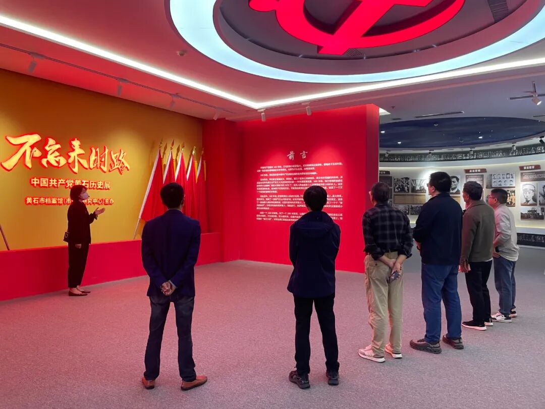 九江市史志部门一行先后参观了市档案馆“不忘来时路——中国共产党黄石历史展”“黄石市建市成就展”,并集体观看了市档案馆倾力制作的新媒体党史短视频《黄石党史故事》《英勇的红三军团》选集。