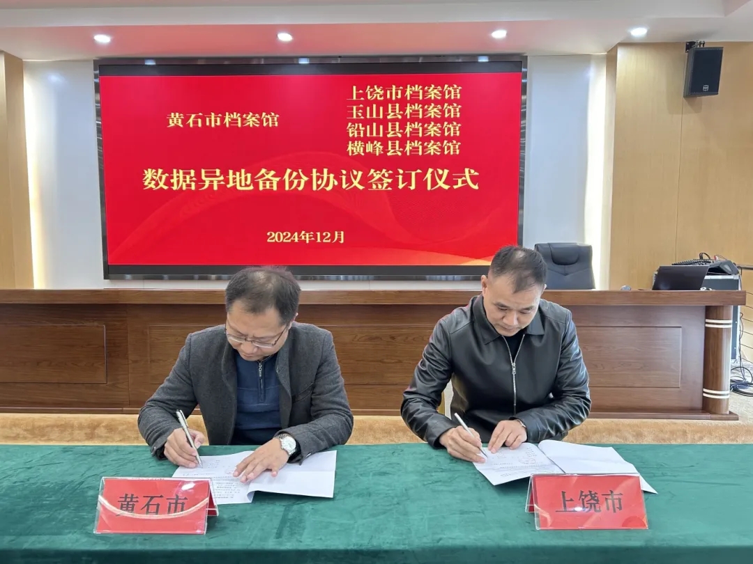 12月3日,江西省上饶市档案馆赴我市开展档案数字资源异地备份工作,双方签署了《重要档案数据异地备份协议》《民生档案异地跨馆查询协议书》,并办理相关交接手续。本次数据托管方主要涉及江西省上饶市及其所辖玉山县、铅山县、横峰县3家国家综合档案馆,数据容量共计11.8TB。