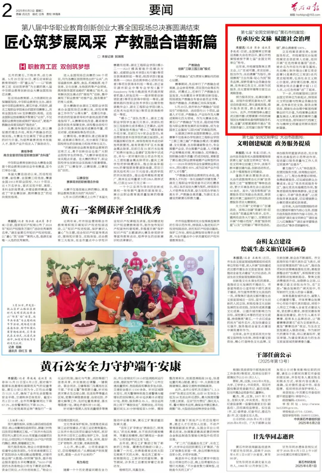 日前,全国精神文明建设表彰大会在京召开,黄石市档案馆被授予第七届“全国文明单位”称号。