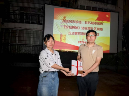 本次活动共开展四项主要内容: 一是市档案馆现场举办了红色档案珍品展,为社区居民群众带来40余件珍贵档案,增强群众对红色文化的直观感知;二是市档案馆向黄印村社区赠送了《红色阳新》党史书籍及《珍档探秘》短视频U盘,助力干部群众筑牢信仰根基;三是黄印村社区568志愿者服务队现场表演了舞台剧《十送红军》,以艺术再现历史,传承红色精神;四是市档案馆现场播放《珍档探秘》《革命歌曲唱响鄂东南》等短视频,重现黄石重大历史事件和红色民谣,带领观众感悟城市精神与革命历程。