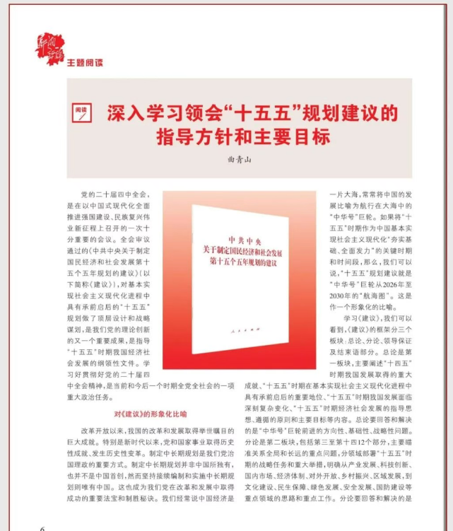 深入学习领会“十五五”规划建议的指导方针和主要目标