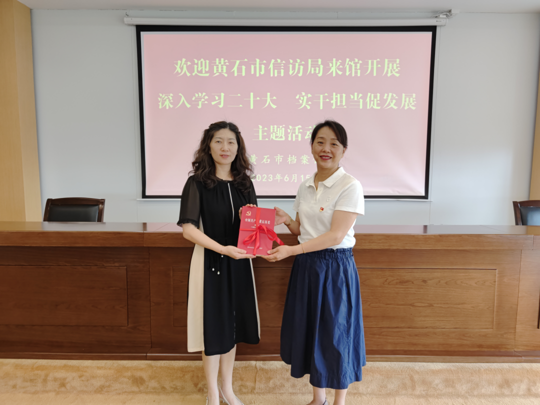 在市档案馆(市史志研究中心)5楼会议室,市档案馆(市史志研究中心)向市信访局赠送了党史书籍,凝聚红色力量,賡续红色基因。