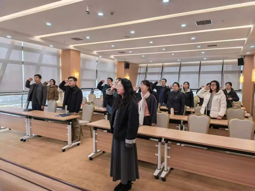 在市档案馆五楼会议室,市档案馆向学院赠送党史书籍《红色记忆》,并播放了市档案馆今年精心制作的、被纳入全市支部主题党日学习范畴的《珍档探秘——档案背后的黄石近现代史》精选短视频。随后,全体党员干部面向党旗重温入党誓词,并围绕短视频内容结合职业教育实际开展深入交流。